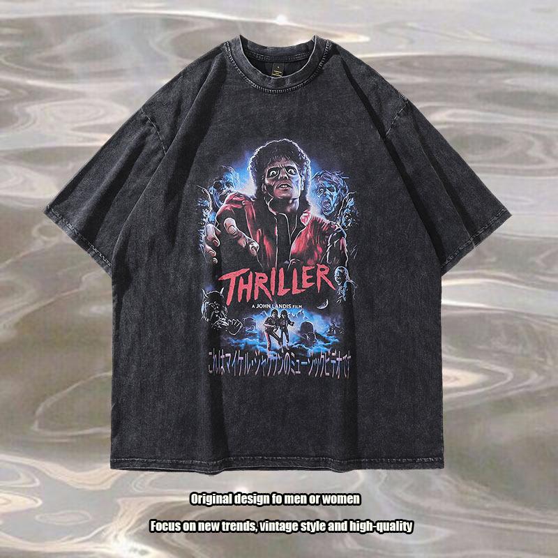 Heavy Cotton American Hip Hop Trendy Brand Retro Printing Washed Old Short-Sleeved T-Shirt Men'S Vintage