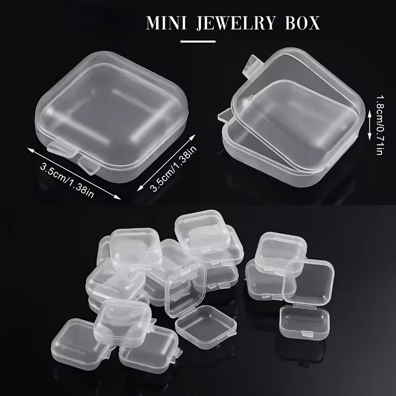 40pcs Mini Plastic Square Storage Containers with Hinged Lid Clear Jewelry Organizer for Earrings Rings Portable Pill Case Boxes