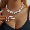 Sparkling Pearl Necklace Multi-layer Rhinestone Choker Earrings Pearl Jewelry Set Girl