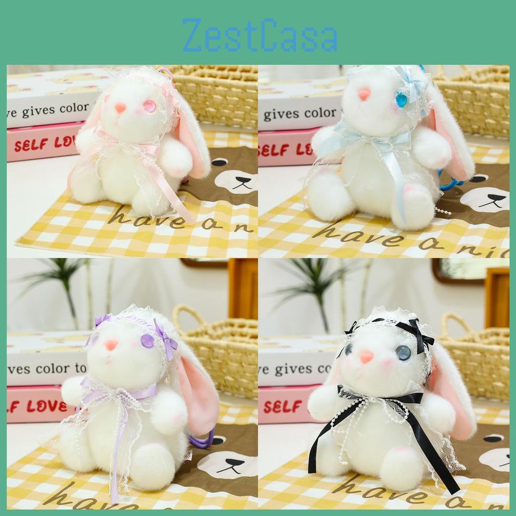 Plush Bunny Keychain With Pearl Necklace For Girls Backpack Decor