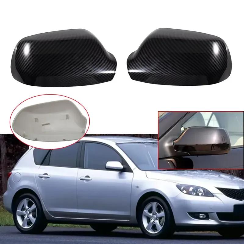 For Mazda 2 3 6 2003-2008 ABS Rearview Side Mirror Cover Wing Cap Exterior Door Housing Trim Replacement Parts ABS Carbon Fiber