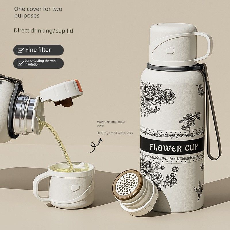 New Model Peony Flower Language 316 Stainless Steel High-Looking, Large-Capacity Thermos Cup for Outdoor Use and Portable Tea Brewing