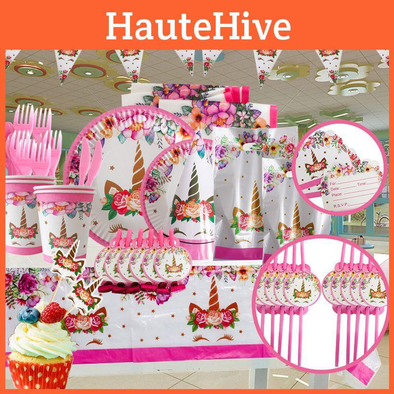 Wreath Unicorn Kids Birthday Party Supplies Colorful Tableware Plates Cup And Forks
