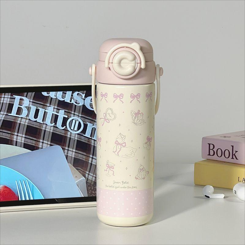 Cute Large-Capacity Thermos Cup for Girls, High-Looking New Style 316 Stainless Steel Water Cup with Straw and Handle
