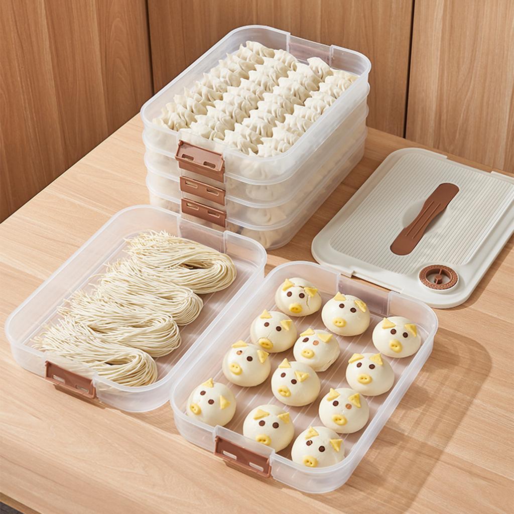 3/4-layer Wonton Dumpling Storage Containers Sealed Quick-Frozen Dumpling Boxes Stackable with Timer Kitchen Tools