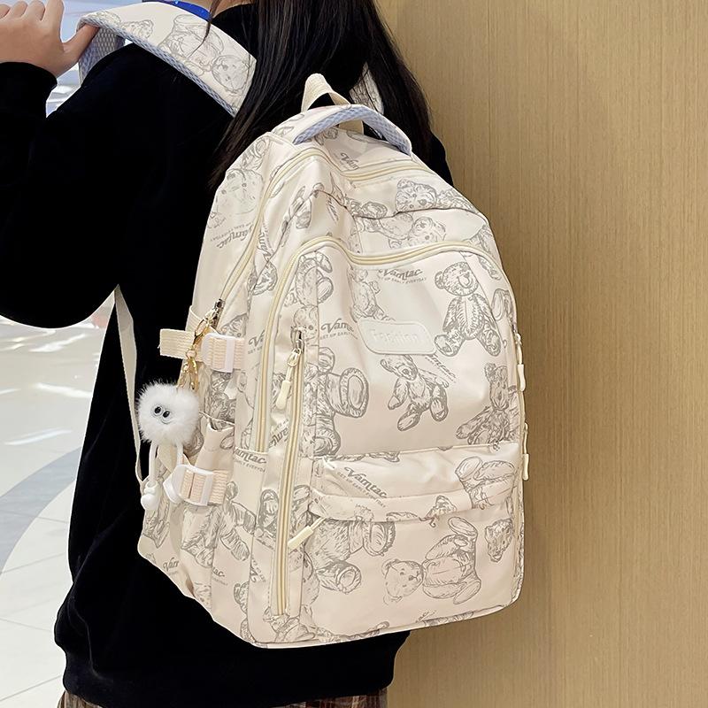 Large-capacity schoolbag women's high-value lazy wind dirt-resistant university campus class bag ins bear nylon backpack