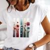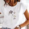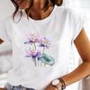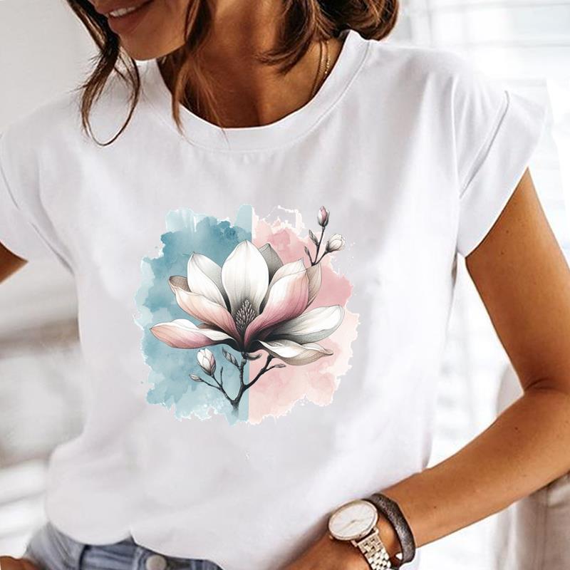 (Asian Size) Casual Clothing Printed Female Top T Shirt o-neck watercolor flower Short Sleeve T-shirts Lady Fashion Women Graphic Tee