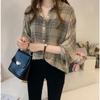 Early Autumn New Plus Size Checkered Shirt Women's Long Sleeved Hong Kong Style Top Chic Shirt