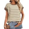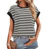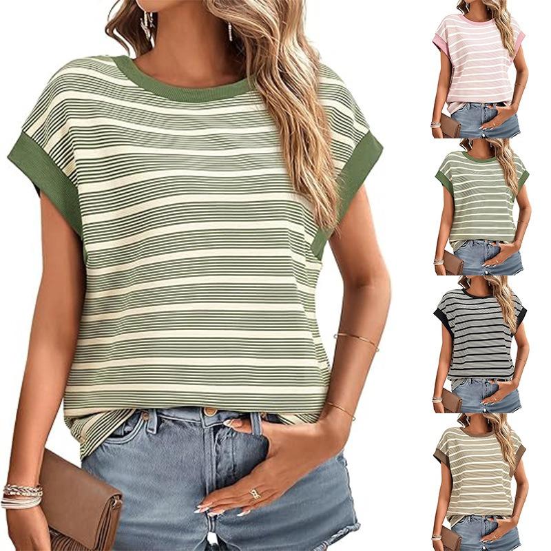 Summer Women's New Round Neck Striped Knitted T-shirt Fashionable Loose and Versatile Contrasting Color Top
