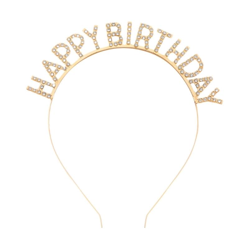 Happy Birthday Props Hairband for Adult Family Gathering Birthday Party Rhinestones Headband Photography Accessories