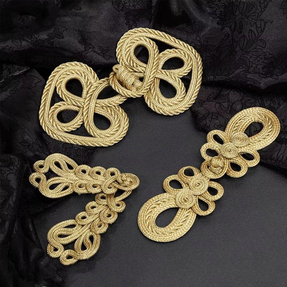 Golden Chinese Knot Buttons Handmade Tang Suit Buttons Gold Lace Trim Clasps Cheongsam Making