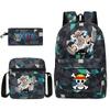 One Piece themed printed backpack + shoulder bag + pencil case three-piece student backpack set 0083