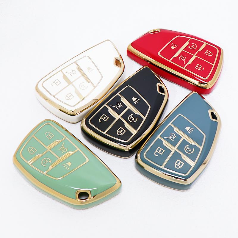 5 Buttons For GMC Yukon Gold Edge TPU Shell for Buick ENVISION S Plus Avenir for Chevrolet Tahoe Suburban Car Key Case Fob Cover