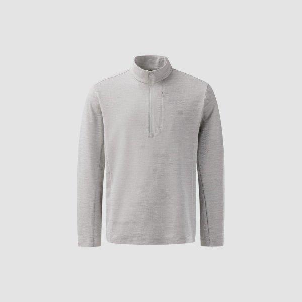The KOLON SPORT Men's Melange Zip-Up T-Shirt JWTBS25141GRI is designed for male hiking. The fabric is made of 100% polyester, and the color is Gray. The product is available in various sizes (95, 100, 105, 110).