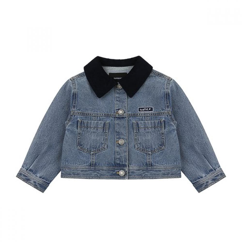 The denim blouson jacket features a simple yet classic design, paired with a navy corduroy material that adds a stylish accent. The collar features bi-color detailing and can be naturally matched with various bottoms, allowing for stylish looks whether worn alone or as a set.