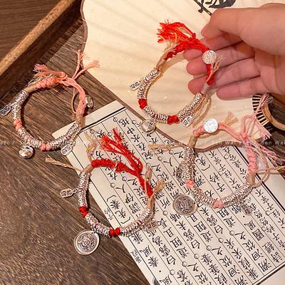 Vysoce hodnotný malý červený provázkový náramek s přepravním zvonkem rok narození nastavitelný čínský styl pár pletený