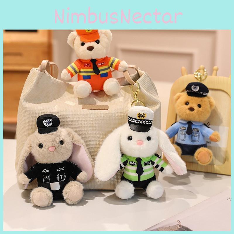 Plush Police Rabbit Keychain With Pp Cotton Filling For Kids And Collectors