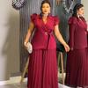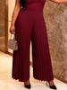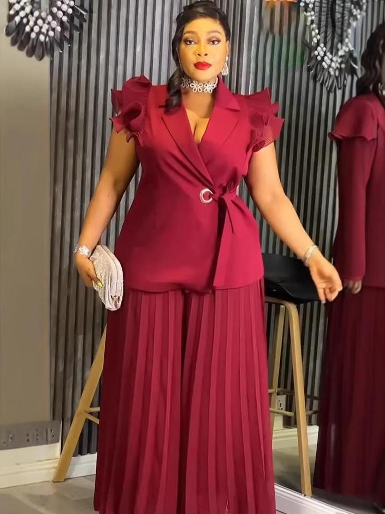 Elevate your style with this elegant wine red suit designed exclusively for curvy women. Crafted from high-quality polyester, this sophisticated set features a chic ruffle sleeve top that adds a touch of femininity. The waist-cinched design ensures a flattering silhouette, while the slimming pleated wide-leg pants offer both comfort and elegance. Perfect for both office and evening wear, this outfit combines fashion-forward design with comfortable fit, making it a versatile addition to your wardrobe.