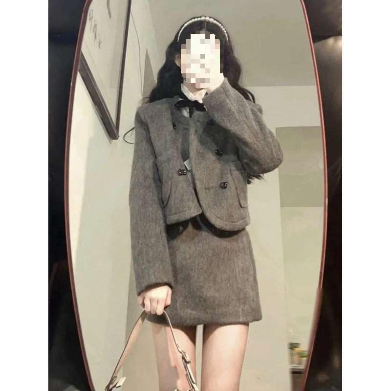 Elegant Socialite High-End Wool Suit Skirt Set - Short Jacket and Skirt for Women