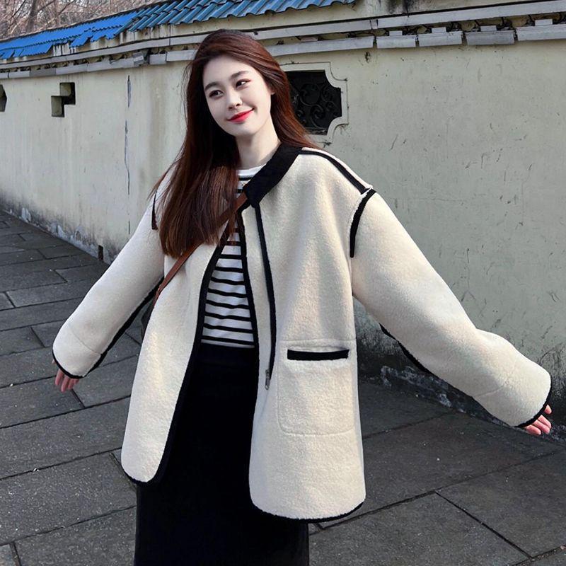 2025 Winter Chic Women's White Lambswool Patchwork Coat