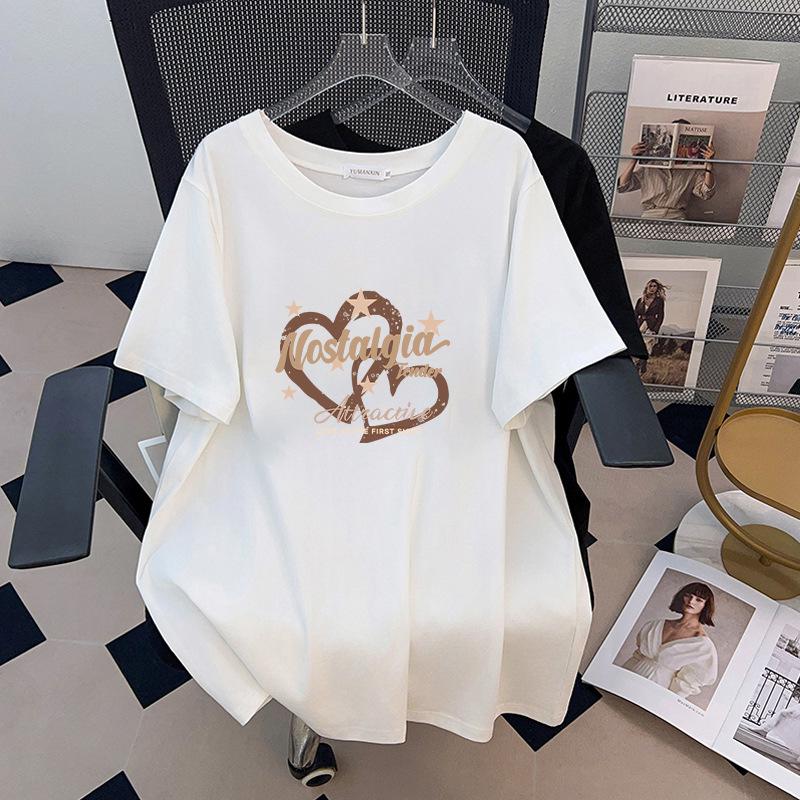 Women's Plus Size Slimming Mid-Length Short-Sleeve T-Shirt - Round Neck, Loose Fit (Sizes 200-350 Jin)