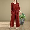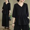 Discover effortless style and comfort with our Chic Slimming Plus-Size Summer Two-Piece Set, crafted from high-quality acrylic material. This elegant ensemble features a light mature style, perfect for warm weather occasions. The set includes a sophisticated top paired with wide-leg pants, providing a flattering silhouette that embraces both fashion and functionality. Ideal for creating a confident, breezy look, this set is a must-have addition to your summer wardrobe.