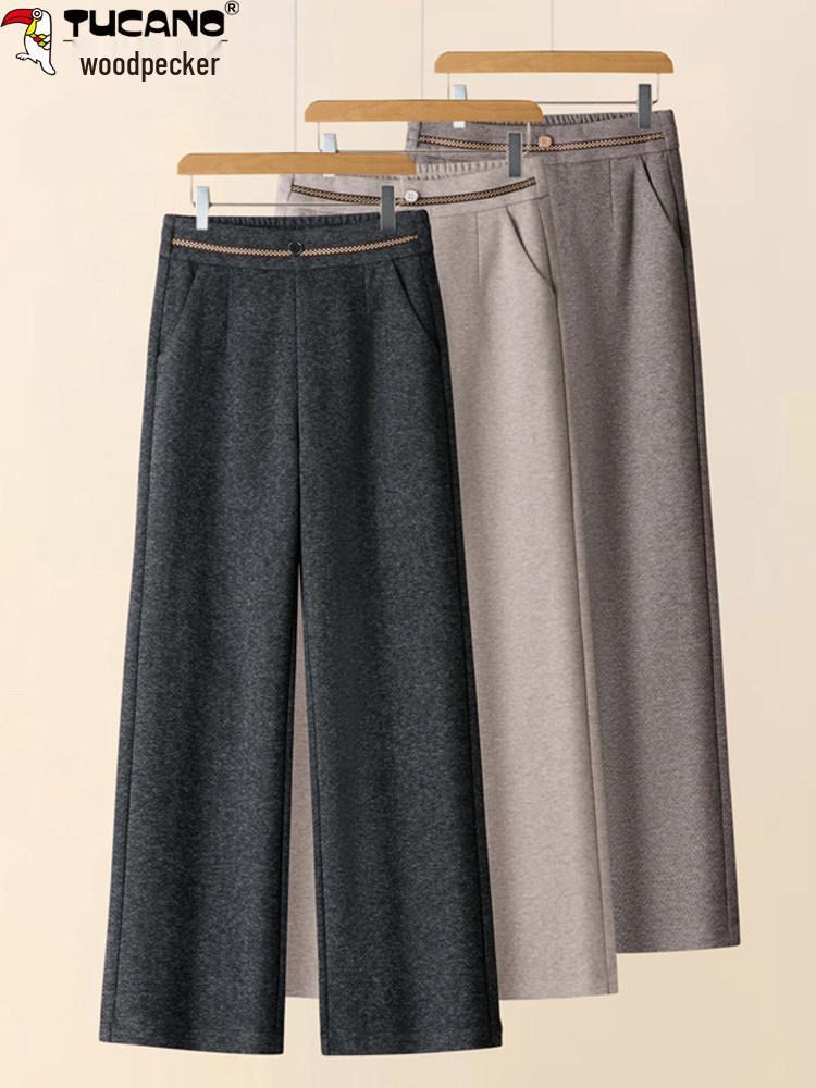 Discover the epitome of style and comfort with these high-end woolen wide-leg pants from the Autumn/Winter Collection. Tailored for the modern woman, these pants feature a high-waist design that accentuates your silhouette while ensuring a comfortable fit. The straight-leg cut offers a soft, casual look perfect for any occasion, and the addition of pockets enhances functionality without compromising on style. Crafted from premium cotton, these pants promise warmth and elegance for the colder months.