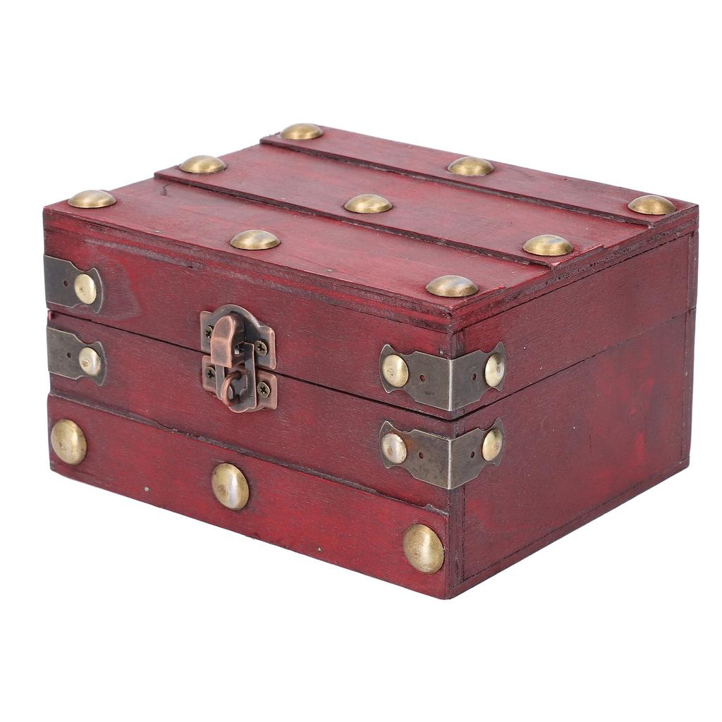 Vintage Wooden Storage Box 145x120x85mm Multifunctional Decorative Treasure Chest Box with 3 Bit Lock