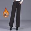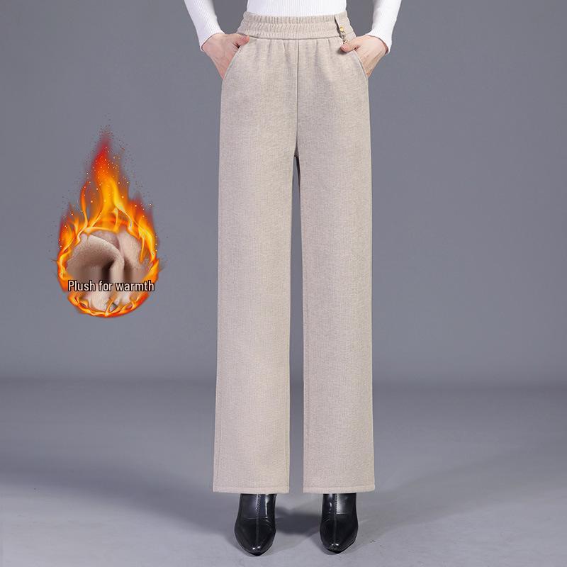 2025 Autumn/Winter Women's Solid Elastic Waist Straight-Leg Pants, Plus Velvet Thickened for Warmth, Ideal for Middle-Aged Mothers