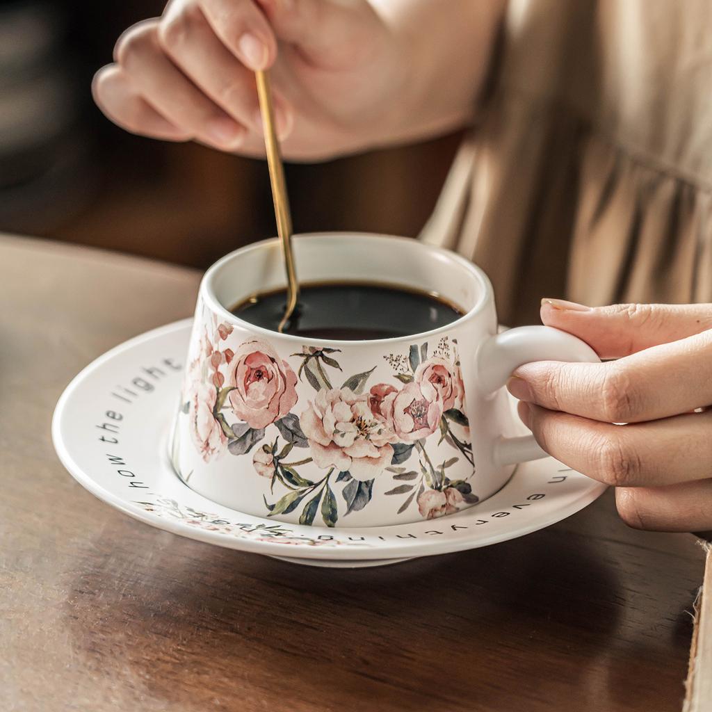 French Retro Cup And Saucer Ceramic Cup Coffee Cup Light Luxury Printing Mug Household Afternoon Tea Latte Cup