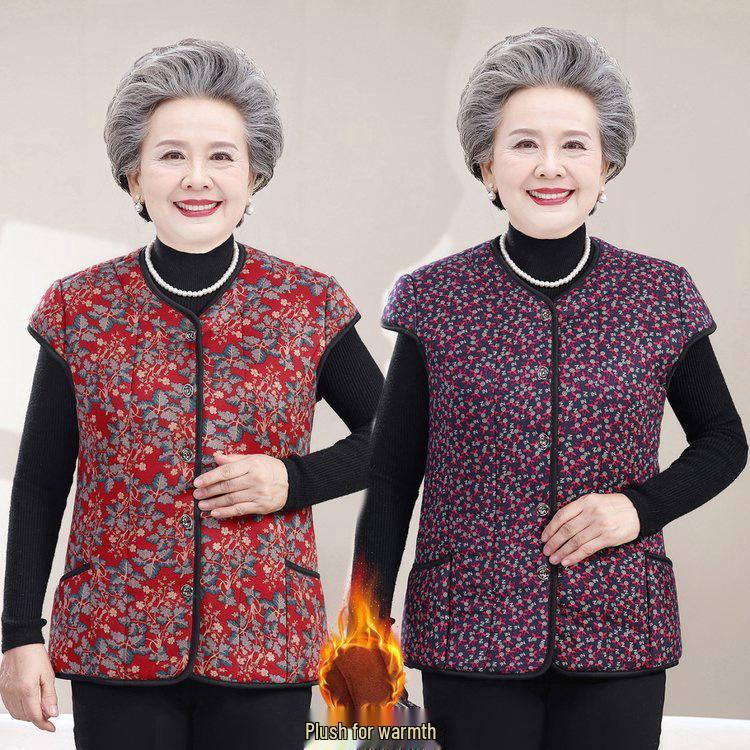 Grandma-Style Sleeveless Cotton Padded Vest with Sleeve Shoulder Protection for Women 2025 - Midlife & Elderly Warmth