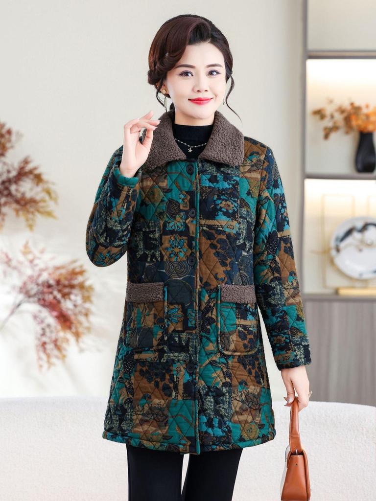 Autumn/Winter 2025 Mid-Length Plus Velvet Cotton Jacket for Stylish Middle-Aged and Elderly Women