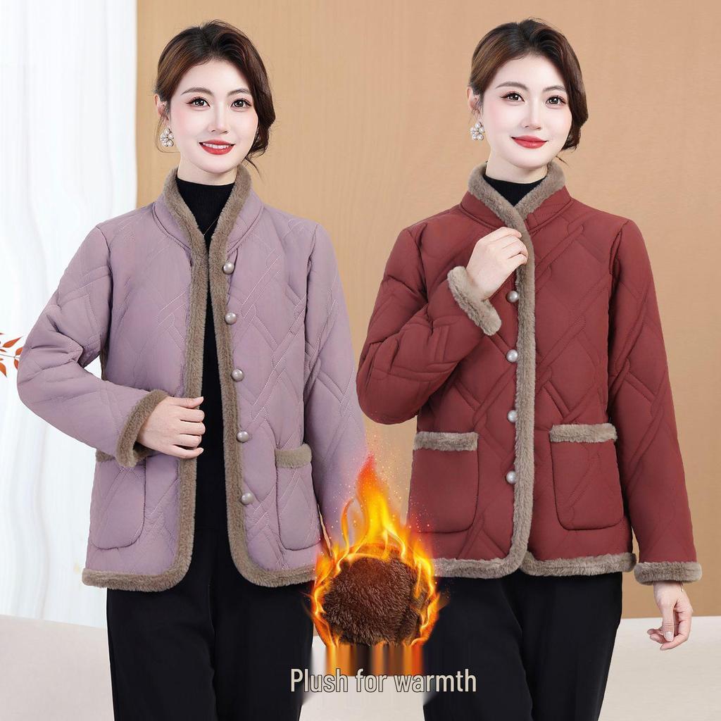 Discover timeless elegance and cozy warmth with our Women's Winter Cotton Jacket. This jacket features a luxurious fleece-padded interior and is crafted from jacquard fabric, offering an age-reducing charm with its sophisticated, Chinese-style design. Enhanced thickness ensures you stay warm even in the coldest weather. The jacket boasts a sleek, stand neckline and a solid pattern, while polyester materials provide durability and comfort. Perfect for adding a touch of style and warmth to your winter wardrobe.