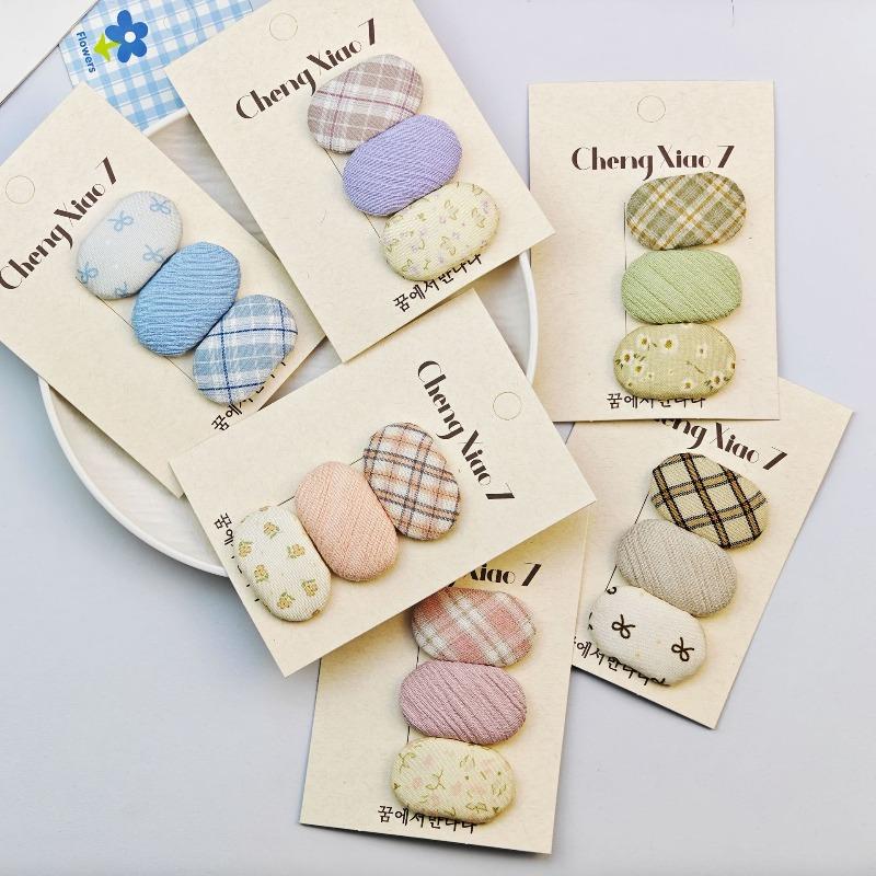 2025 Spring New Fabric Oval BB Clips, Fresh Plaid Floral Cute Barrettes,Versatile Fashion Hair Accessories for Baby Girls