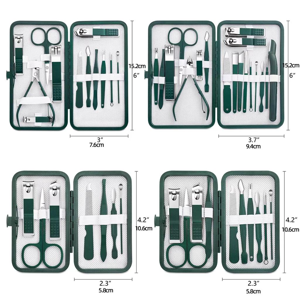 Stainless Steel Nail Clippers Set Grooming Tools Set With Portable Case Manicure Art Tool Green Nails Cut