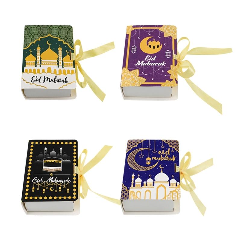 Celebrate the Eid Festival with our 50Pcs Book Shape Eid Paper Candy Bag Party Treat Boxes Set, great for adding festival touch to your holiday treats.