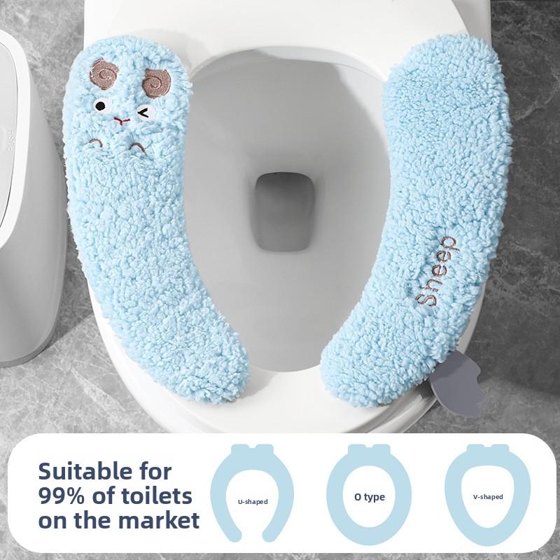 1/2PCS.Cute Cartoon Thickened Adhesive Toilet Seat Cover, Warm & Skin-Friendly,Universal for Bathroom,Waterproof&Easy to Install
