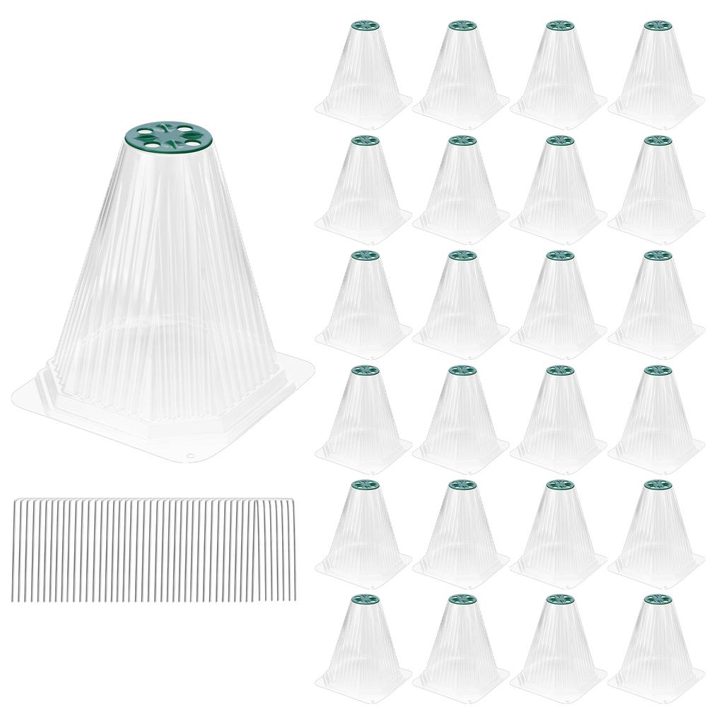 20 Pack Adjustable Garden Cloche with Rotatable Vent for Seedling Vegetable Plastic Plants Cover with Ground Stake Plants
