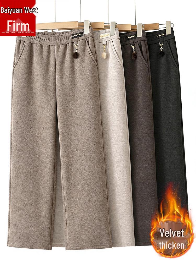 Mom’s Fleece-Lined Wool Pants - Warm, Thickened Flannel for Elderly, Straight-Leg Style, Perfect for Autumn & Winter