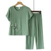 Experience the perfect blend of style and comfort with our Summer Fashion 2-piece ladies suit. Crafted from high-quality cotton and linen, this suit ensures breathability, softness, and wrinkle resistance. The top features a round neck, short sleeves, and is adorned with delicate flower print. The set is completed with comfortable cropped pants. This casual, loose fit design offers extra room for comfort, making it an ideal choice for any occasion - be it a party, office, shopping spree, vacation or daily wear. Easily pair it with shawls, jackets or cardigans and match it with sneakers or casual shoes for a chic look. This charming ensemble makes a great gift for your wife, mother, daughter, girlfriend or friend. Embrace the summer in style with this fashionable and comfortable 2-piece set!