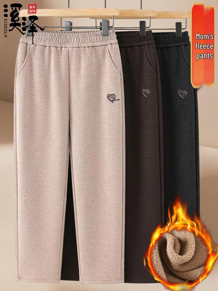 Discover the ultimate blend of comfort and style with these velvet-lined woolen straight-leg pants, perfect for middle-aged women during the autumn and winter seasons. Crafted from high-quality polyester material, these pants offer a sportive style that effortlessly complements any casual wardrobe. The plush polyester lining ensures warmth on chilly days, while the practical pocket decoration adds a touch of functionality and flair. Ideal for both active days and leisurely outings, these pants provide a cozy yet chic solution for seasonal dressing.
