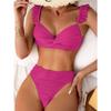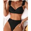 Women's Ruched Twist Front Ruffle Strap High Waist Bikini Set Two Piece Swimsuit