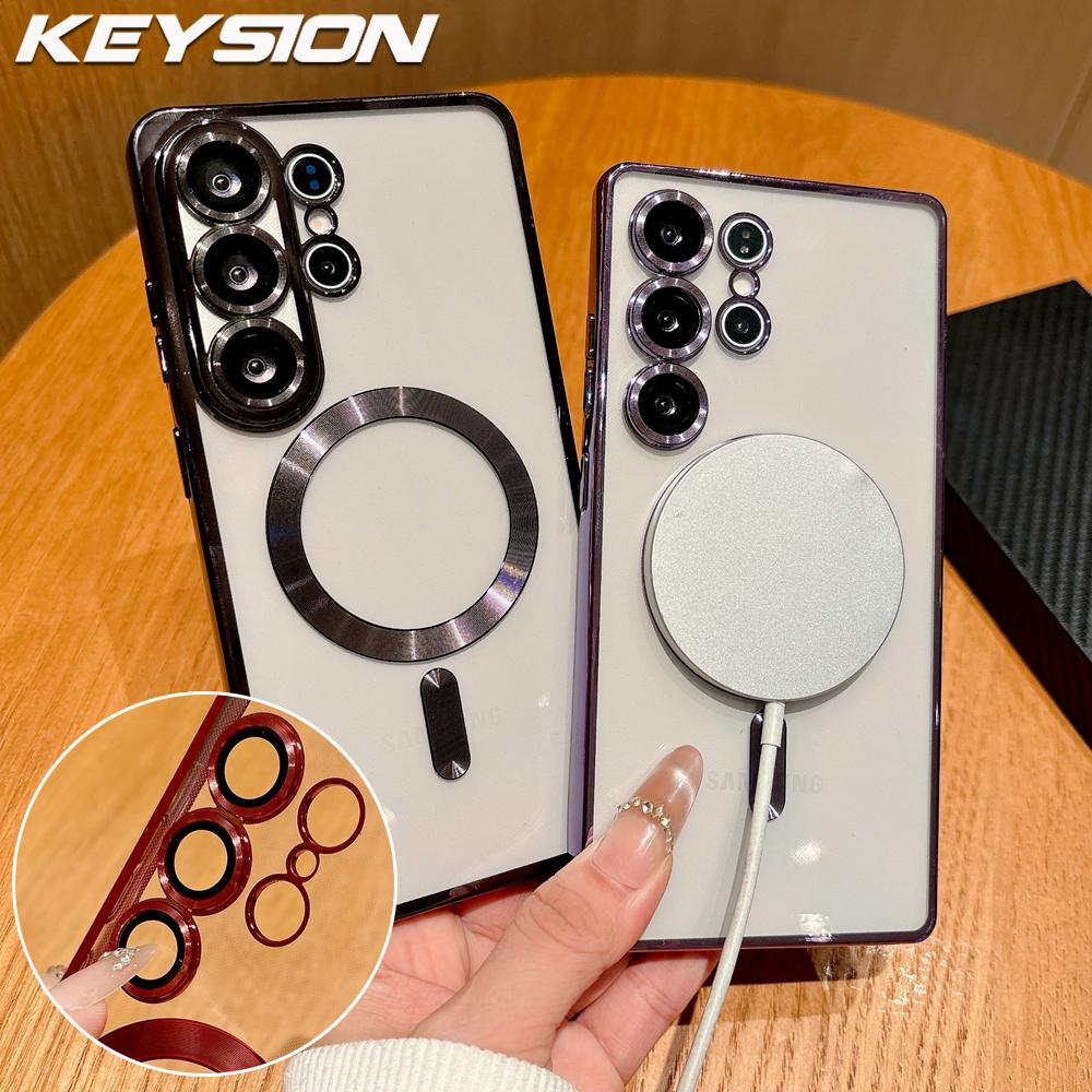 KEYSION Magnetic Plating Transparent Case for MagSafe for Samsung Galaxy S26 Ultra 5G S26+ Shockproof Lens Protector Phone Cover