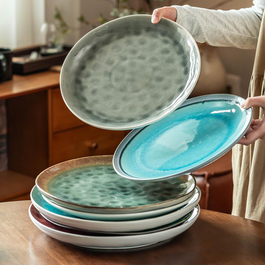 Advanced Sense Ice Crack Glaze Plate Collection Beautiful Ceramic Plate Vegetable Plate Household Commercial Tableware Large Plate Steak Plate