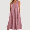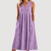 Ladies' Casual Pullover V-neck Sleeveless Cotton And Linen Loose Dress
