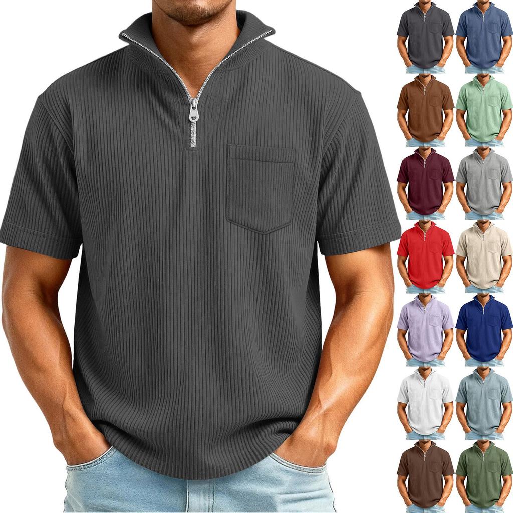 Men's 1/4 Zip Corduroy Short Sleeve Top | Loose Fit Fashion Casual Pullover For Daily Wear