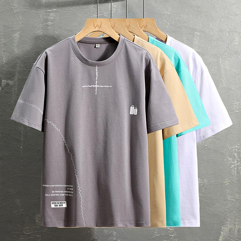 Men's Minimalist Line Graphic Crew Neck T-Shirt - Casual Short Sleeve Basic Tee