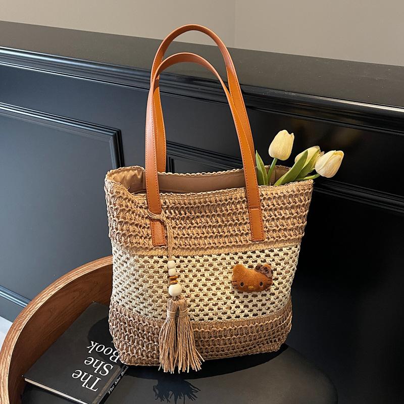 Letní plážová volnočasová dovolená velkokapacitní taška dámská módní slámová tkaná taška jednoduchá přenosná taška přes rameno