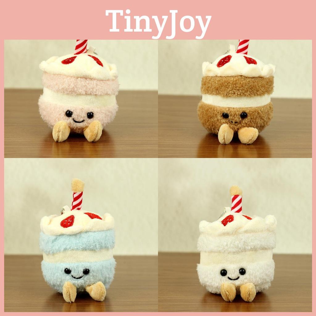 Rozkošný plyšový přívěsek na klíče ve tvaru dortu s mléčným čajem, přívěsek postavičky s výplní z měkké PP bavlny
