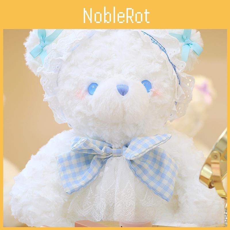 Plush Rabbit Bear Doll With Lace And Checkered Bow Decor For Girls Kids Birthday Gift And Sleep Support